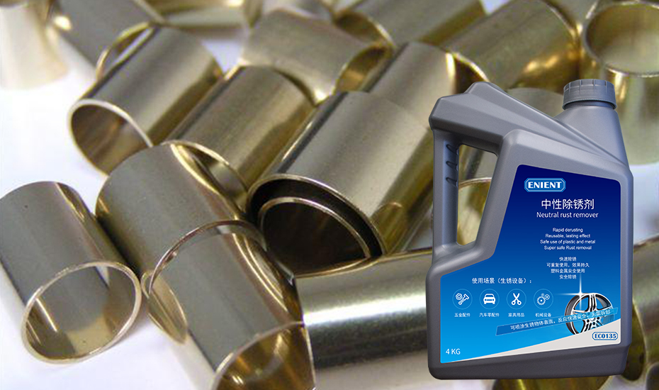 ENIENT®EC0135中性除锈剂应运而生。这款产品专为黄铜管件设计,采用创新的中性配方,不含强酸、强碱,不会对黄铜管件造成腐蚀或损伤。与传统的酸性或碱性除锈剂相比,这款除锈剂不仅对金属更为温和,而且操作更加简便高效。只需将黄铜管件放入稀释后的除锈剂中,静置约2分钟,您就能看到管件表面的锈斑迅速溶解、脱落,展现出铜本色的光泽。