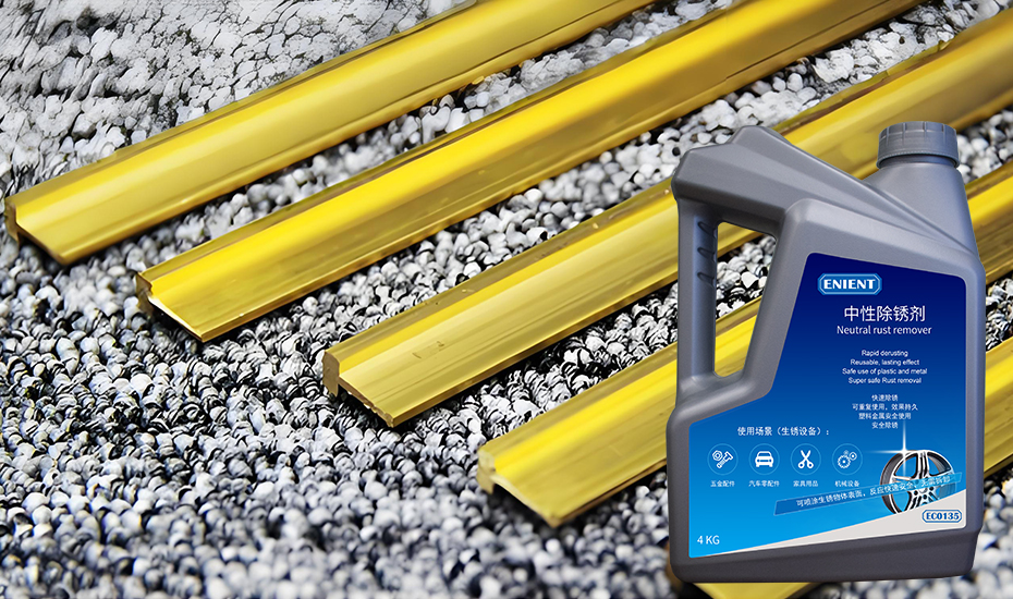 李先生家中的黄铜装饰条已经使用多年,逐渐出现了明显的锈迹。起初,他尝试使用家中的普通清洁剂清理,但效果不佳,锈迹依旧顽固。为了恢复黄铜装饰条的原有光泽,李先生决定尝试市面上口碑极佳的ENIENT®EC0135中性除锈剂。