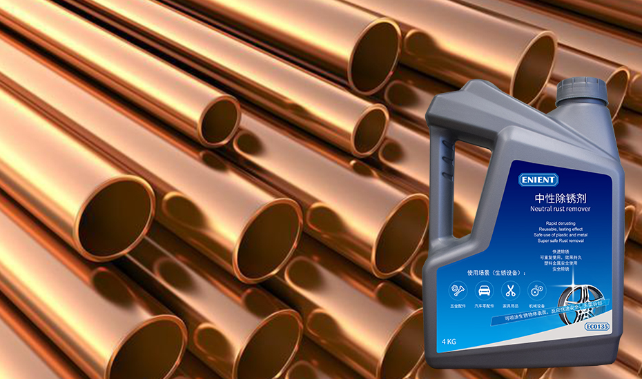 为了有效解决黄铜管道的锈蚀问题,ENIENT®推出了一款专门用于金属表面处理的中性除锈剂——ENIENT®EC0135。这款产品与传统除锈剂最大的区别在于它的中性配方,无酸无碱,既能快速去除表面的锈迹,又不会对金属本身造成腐蚀或损伤。